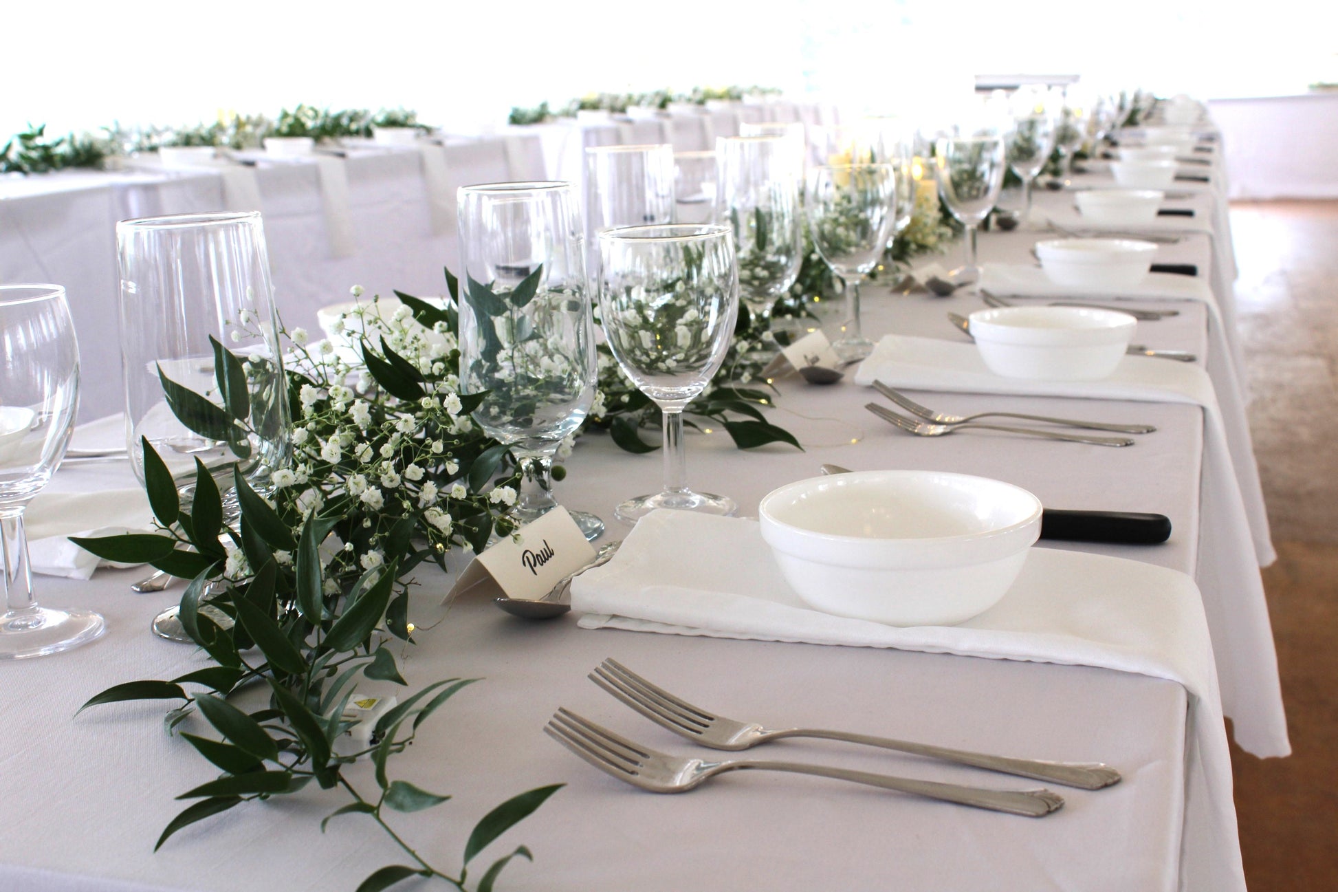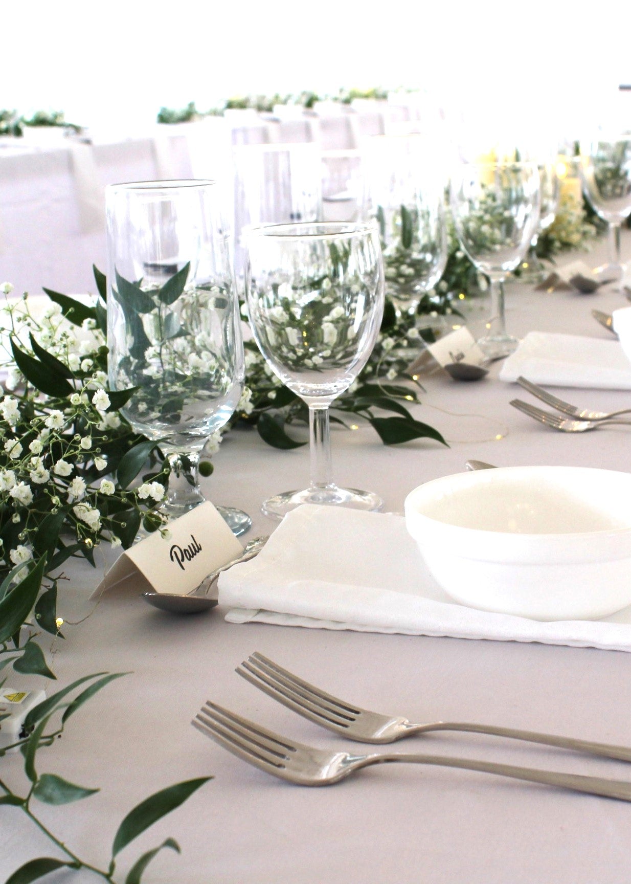 Guirlande de verdures fait de ruscus italien et de soupir de bébé. Dimension de 1 mètre de longueur.